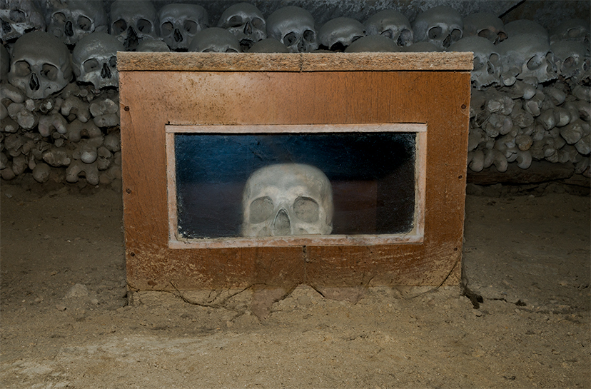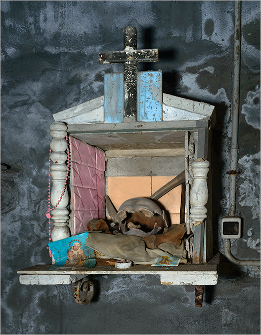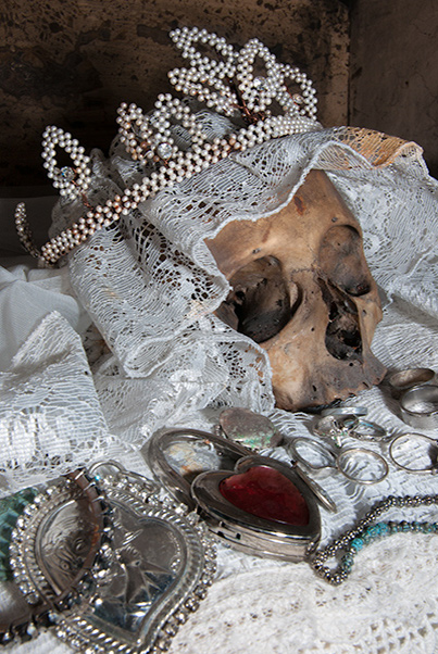 Favours From Beyond (2016-2023) documents the material culture of these ongoing vernacular religious praxes in Naples and the role of individual agency and creativity within religion. in these dark, damp and dusty sites - inviting us to enter a liminal space where life, death and the in-between coexist. The project is the first comprehensive archive and visual typology of the diverse range of skull shrines and associated objects at the Cemetery of Fontanelle, Santa Maria delle Anime and other sites in Naples.
