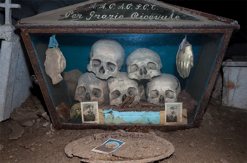 For decades, devotees have visited these anonymous 'little skulls' to adopt them and offer prayers to grant their souls a speedy crossing from purgatory into heaven. In return, the 'anime pezzentelle' (vagabond souls) conjured by the skulls were expected to be conduits for a range of divine favours both immediate and long-term. Common among the many and varied favours requested are those for an untroubled and healthy journey through life, and, for the revelation of the coming week's winning lotto numbers in dreams.